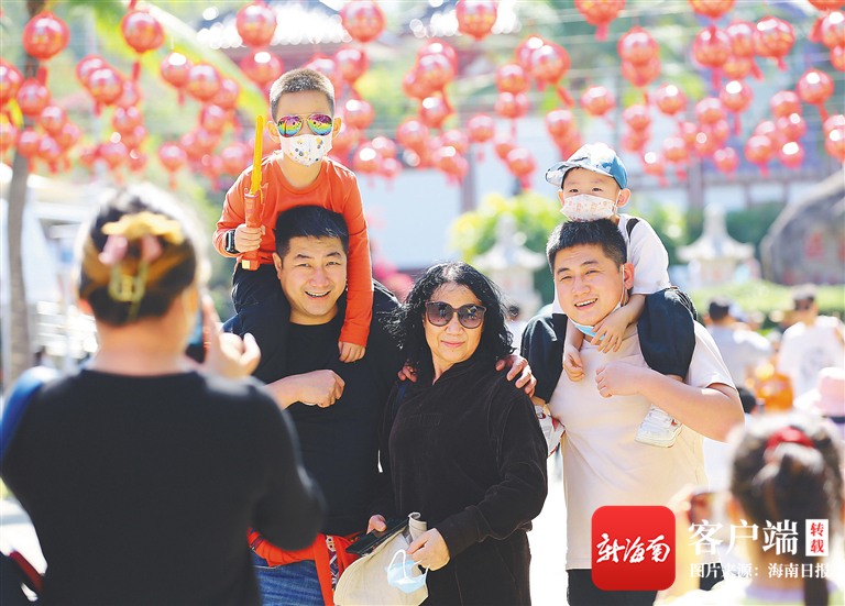 1月25日,家長帶著孩子在南山文化旅游區游覽。通訊員 陳文武 海南日報記者 王程龍 圖/文