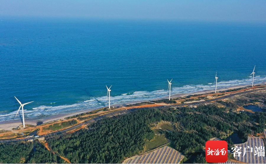 木蘭灣旁綿延幾公里的風力發電機和旅游公路形成一道靚麗風景線。記者汪承賢攝