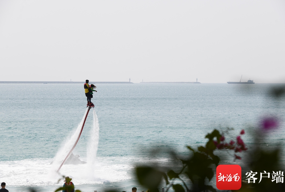 2月26日,游客在三亞大東海景區(qū)體驗海上娛樂項目。記者沙曉峰攝