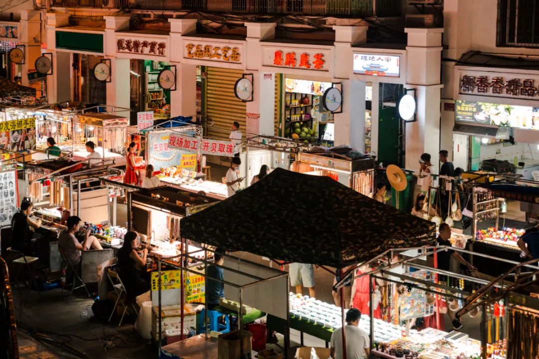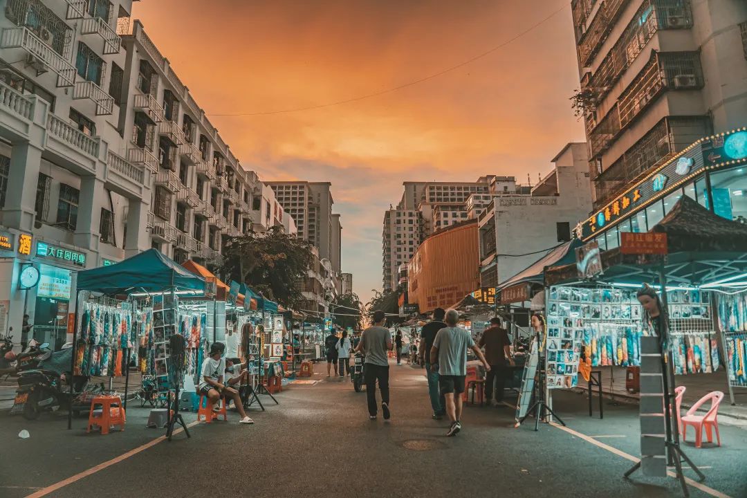 小攤販們陸陸續(xù)續(xù)支起攤位,推車上擺著琳瑯滿目的手工藝小商品,讓人目不暇接,熱帶水果、海南特色小吃,令人垂涎欲滴……