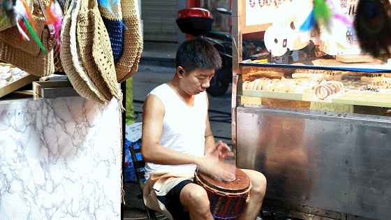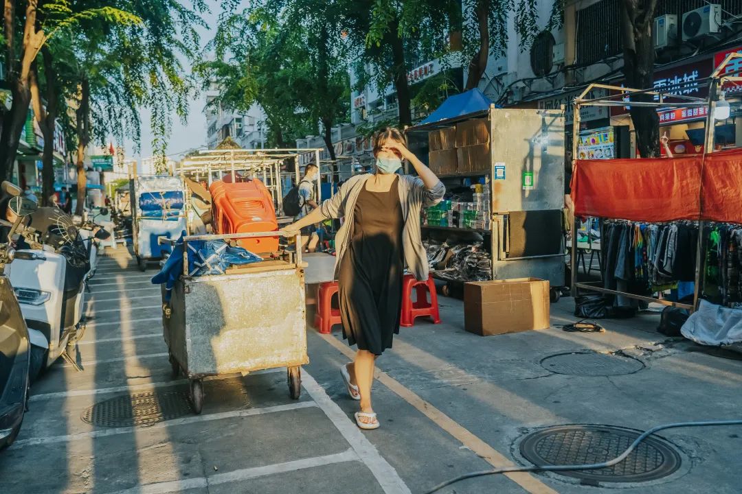 直到晌午才開始歇了聲音,擺攤?cè)碎_始吃起第一頓正式餐,接踵而來的就是悶熱午后的困頓感,閉上眼開始補(bǔ)足睡眠,準(zhǔn)備迎接傍晚下班后的又一次高潮。