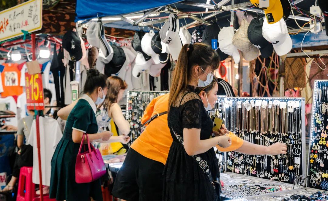 人潮不斷涌動(dòng),街道喧鬧里混著叫賣聲和歡笑聲。琳瑯滿目的商品,大到衣服包包帽子鞋子,小到金銀配飾手機(jī)貼膜,總有一款是你喜歡的。