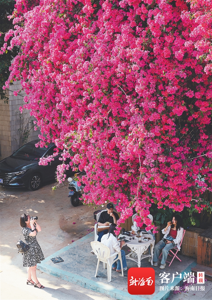 原標題:依托社交網(wǎng)絡(luò)平臺,??谝恍^(qū)“三角梅瀑布”景觀爆火出圈——“野生景點”流量如何變“留”量
