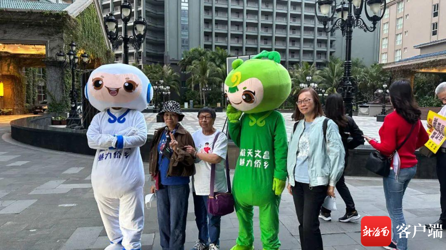游客們到達后,文昌市旅游部門在下榻酒店為該旅行團舉行了熱烈的歡迎儀式,“椰寶寶”“紫貝貝”熱情起舞,工作人員們為游客們送上清涼茶飲。
