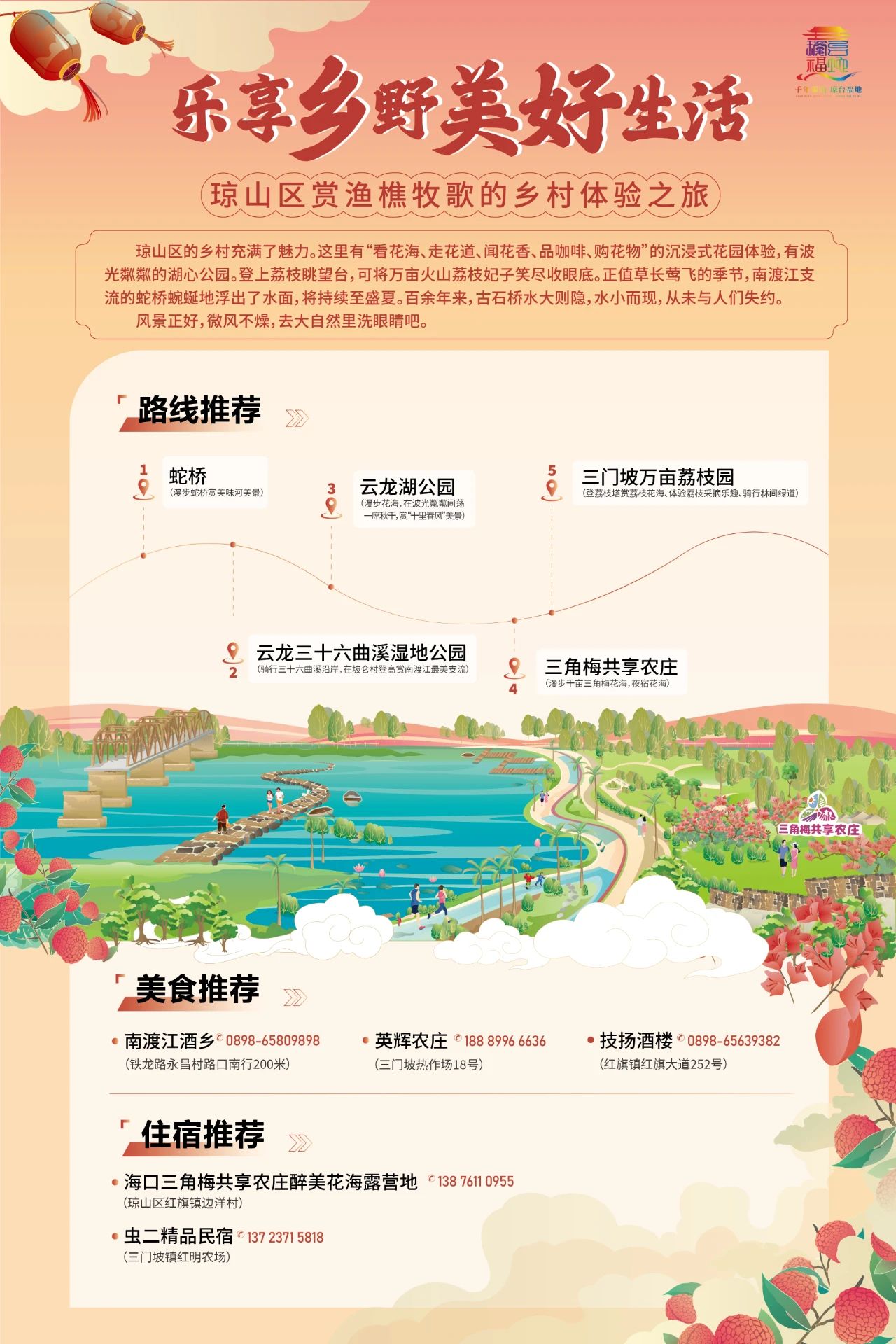 鳳翔濕地公園——永朗村露營基地——長泰村馮白駒故居——??谌敲饭蚕磙r(nóng)莊——邁思自然教育營地