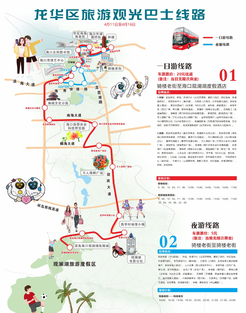 新海南客戶端、南海網(wǎng)、南國都市報(bào)4月9日消息(記者 丁文文)逛消博,游龍華。從清晨到日落,載你收集燦爛和美好,感受熱帶濱海城市海口活力跳動(dòng)的脈搏……4月11日至16日,海口市龍華區(qū)旅游觀光巴士推出20元坐巴士逛上一整天活動(dòng),帶市民游客領(lǐng)略龍華旅游魅力。