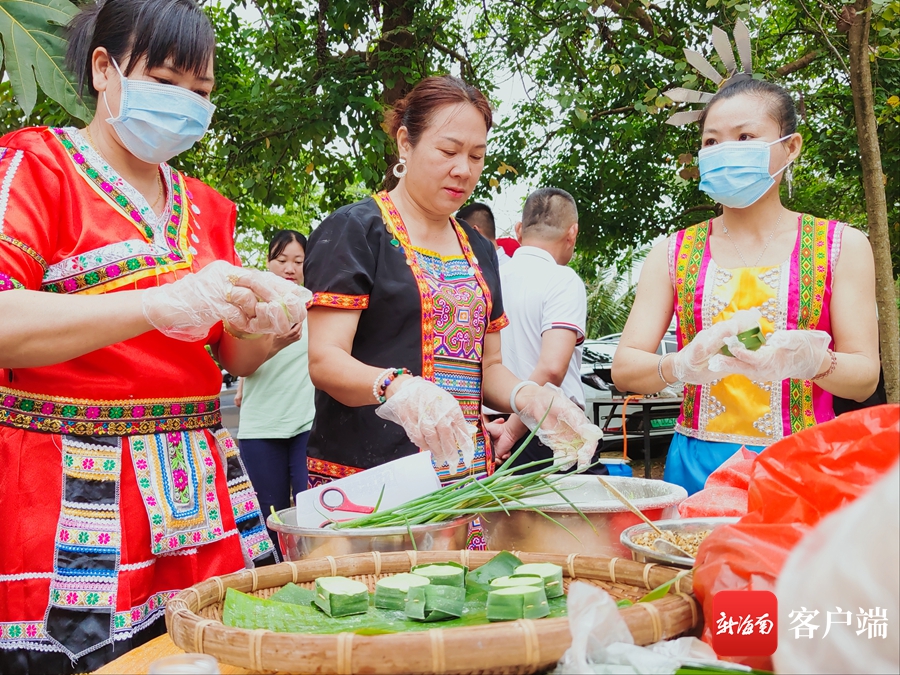 黎族村民現場制作斑蘭糕點。張野 攝