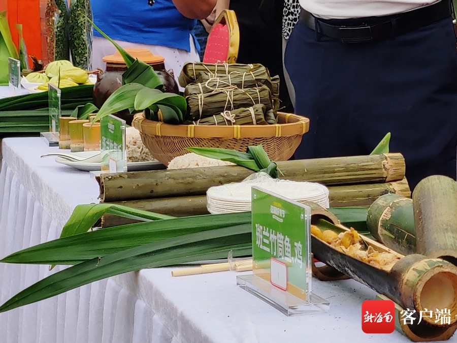 美食攤主黃倩和王賓來自南橋鎮橋北村,為了今天的活動,他們特意穿上了黎族節日的盛裝,“今天帶來的是我們的黎家竹筒飯,里面加入了斑蘭,直接打開就可以食用 ,特別香哦!”看到自己帶來的斑蘭竹筒飯、山蘭酒等大受歡迎,兩人臉上洋溢著幸福的笑容