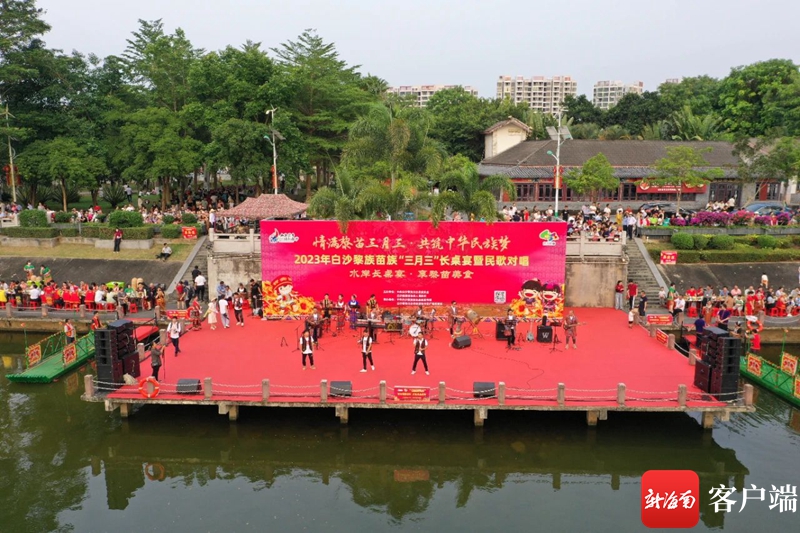新海南客戶端、南海網、南國都市報4月23日消息(記者 梁振文)4月22日下午,2023年白沙“三月三”主題活動之一的長桌宴暨民歌對唱在南叉河堤兩岸熱鬧開啟。白沙縣領導干部同數千名市民游客以及白沙的黎族苗族同胞歡聚一堂,盡情體驗一場集視、聽、味于一體的文化盛宴。