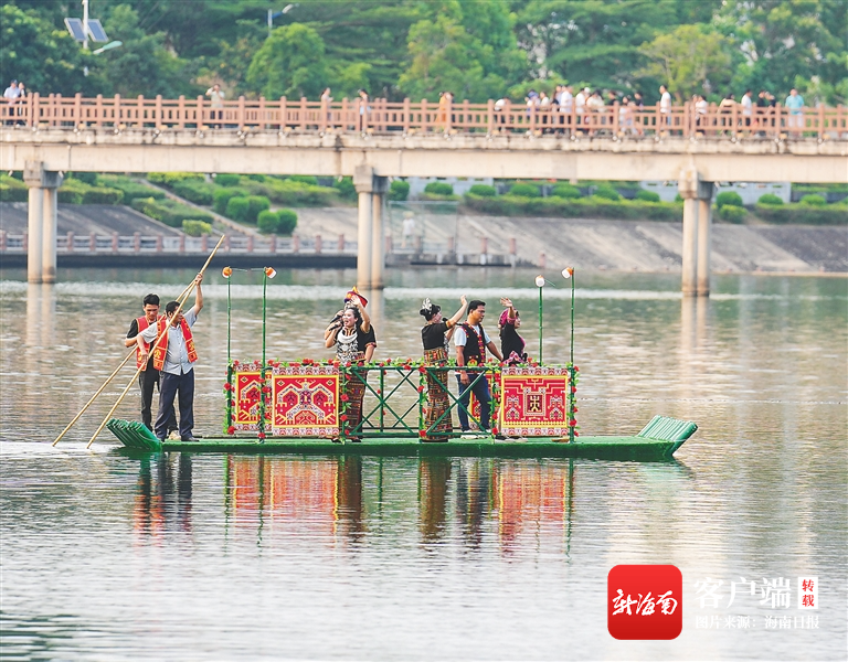 4月22日,白沙牙叉鎮南叉河上的歌唱節目,慶?!叭氯?。 海南日報記者 李天平 攝