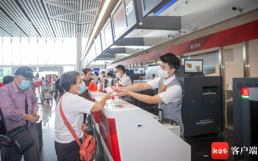 海南航空地面服務人員為旅客提供服務。記者 劉洋 攝