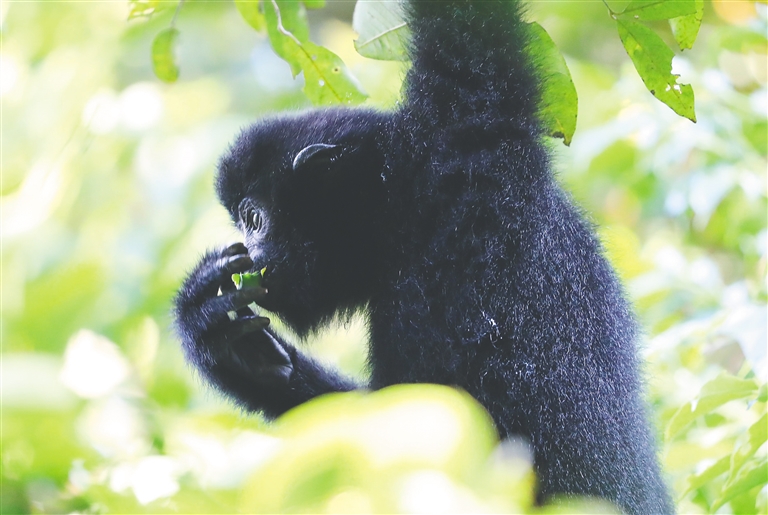 正在進食的海南長臂猿。海南日報記者 李天平 攝