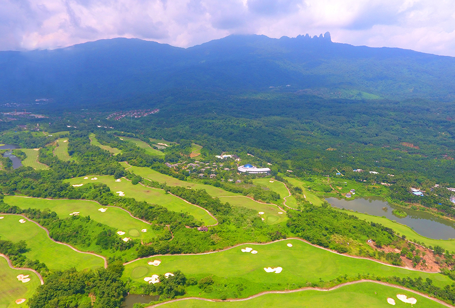 保亭七仙嶺下的高爾夫球場環繞于自然湖畔,掩映在熱帶雨林之中。海南日報記者 李英挺 攝