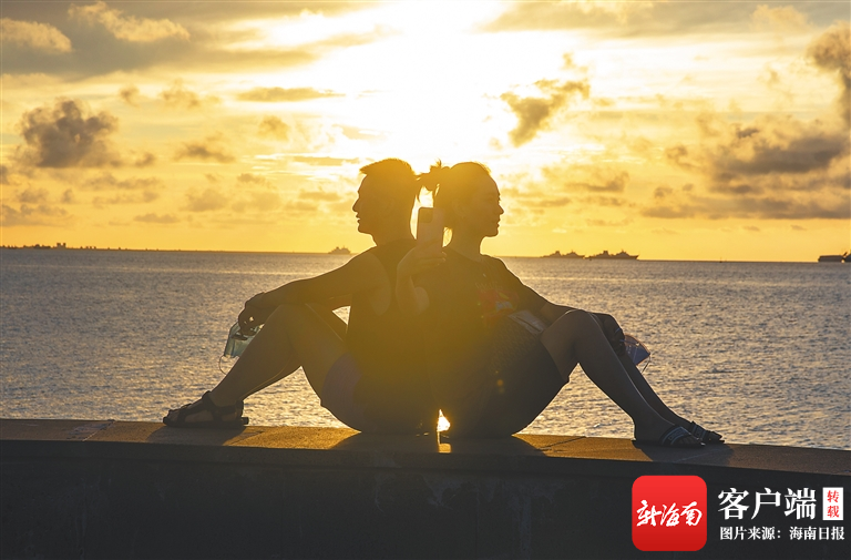 一對情侶在海口灣一帶合影。海南日報(bào)記者 李天平 攝