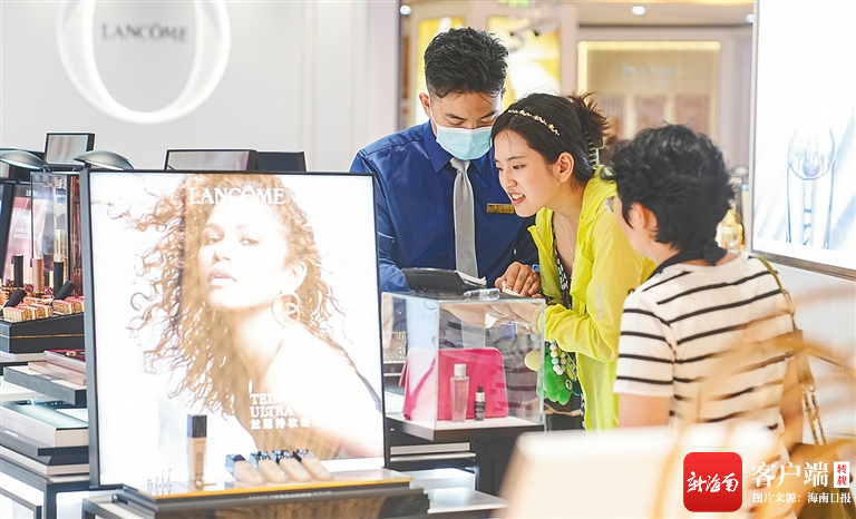 在海口日月廣場海控全球精品免稅城內,消費者選購免稅商品。高林 攝