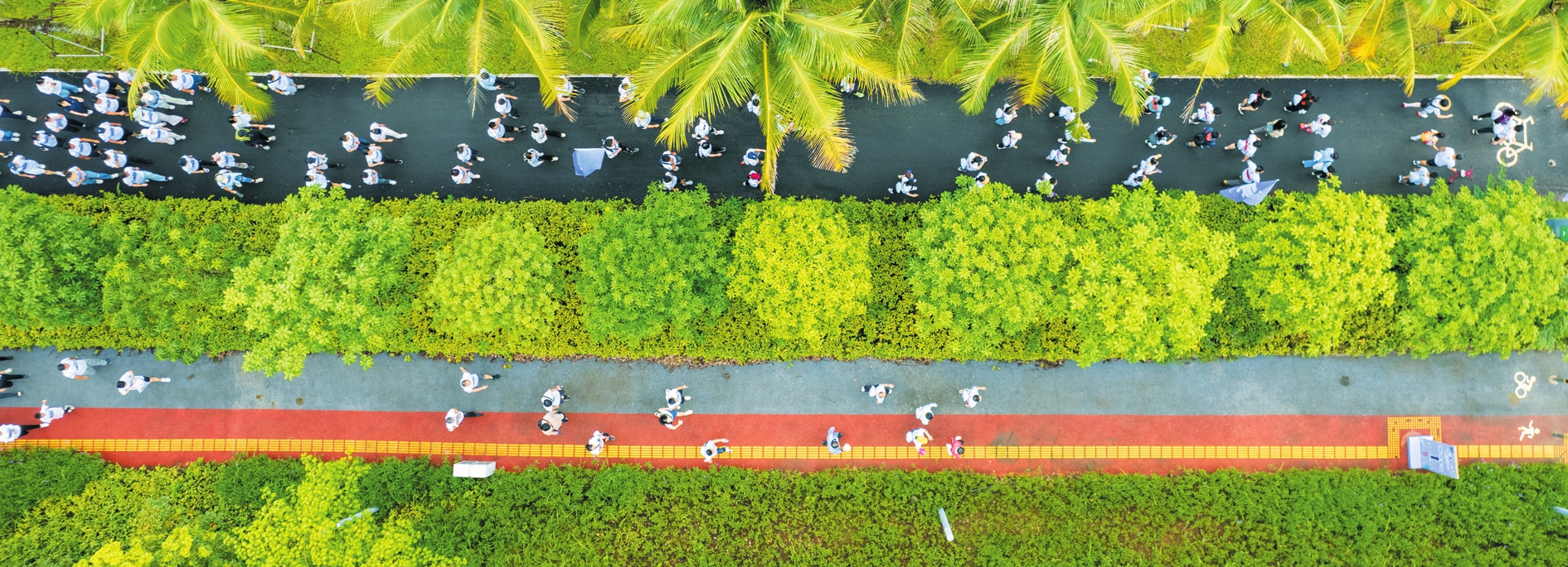 5月14日,“一醋即發(fā),海來文往”跨海徒步美食行活動在海口江東新區(qū)展示中心啟動,選手們行走在江東大道的步道上。海口日報記者 陳長宇 攝