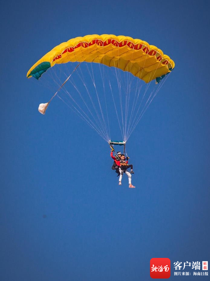 游客在儋州海花島體驗跳傘。特約記者 吳文生 攝