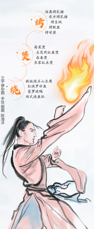 用火是人類烹調史的開端,中國傳統的烹飪方式,很少能離得開火。三亞落筆洞遺址出土的相關文物顯示,早在一萬年前,海南先民就已會以火烤食而食之。炒、燉、燒、煲、煨、燔……時至今日,在海南人的美食清單上,仍有許多“火攻菜”。而巧借火力、掌握好火候,釋放食材的鮮香滋味,是海南廚師必學的一門功課。