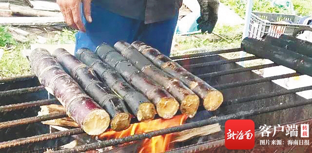 將火運用得爐火純青的海南人,還有吃烤甘蔗的習慣。秋冬季節,你可能會在街頭巷尾看到有人在烤甘蔗賣。甘蔗被切成一段一段,放于燒烤架上,十幾分鐘后,待黑蔗皮開始往外滲出糖水,便可取下來放涼食用。烤過的甘蔗散發著清香,口感更加清甜可口,是一種很接地氣的小食。