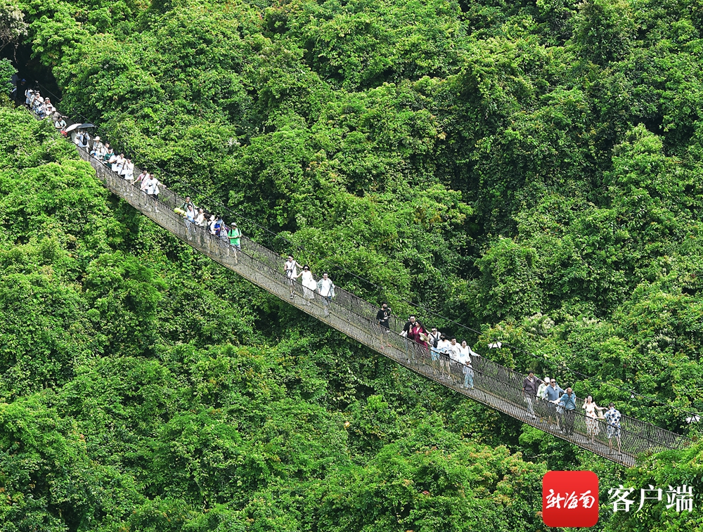資料圖:6月22日,游人在三亞亞龍灣熱帶天堂森林旅游區登高望遠,感受夏日熱帶雨林涼爽宜人的旅游環境。通訊員 黃慶優 攝