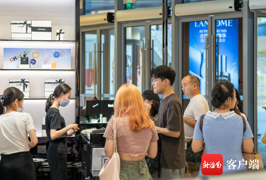 新海南客戶端、南海網6月29日消息(記者 劉洋 通訊員張可)6月29日下午,記者在中免集團海口日月廣場免稅店看到,各類優惠活動吸引來眾多離島游客前來選購免稅商品。